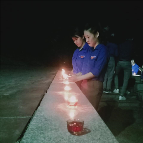 Các đồng chí Đoàn viên chi đoàn Cán bộ - Giáo viên tham gia Lễ thắp nến tri ân, dâng hương, thả đèn hoa đăng tri ân các Anh Hùng Liệt Sĩ huyện Phú Lương do Huyện đoàn tổ chức